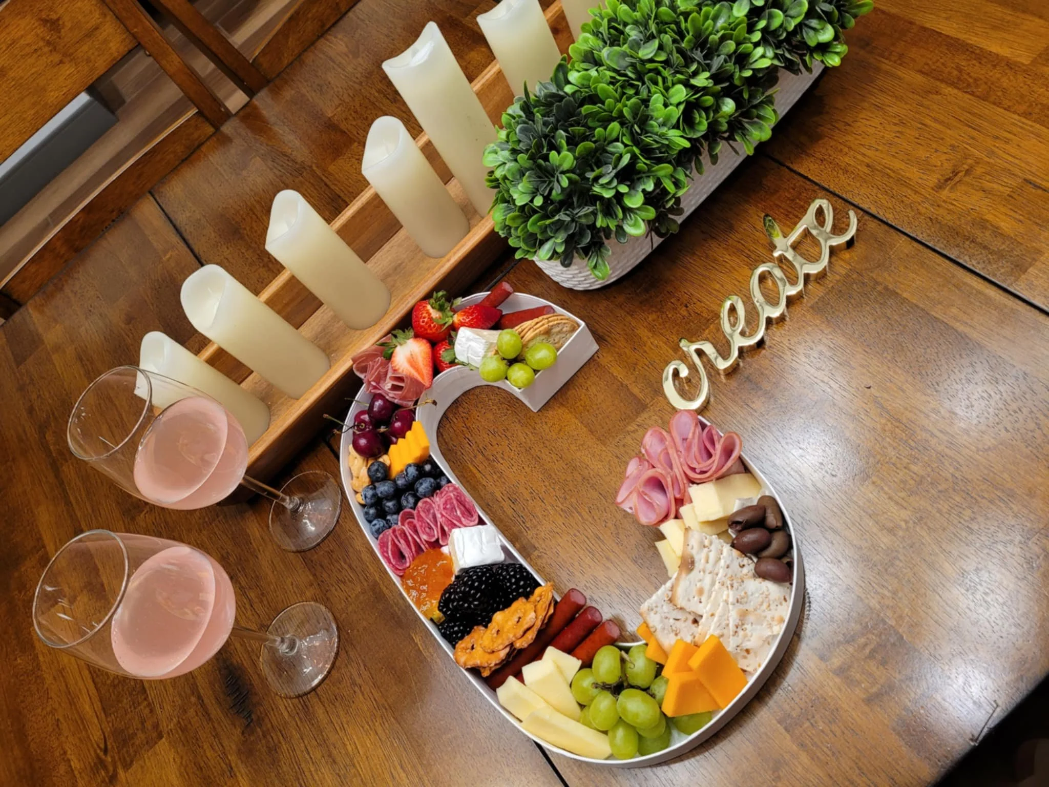 This fun board features a Letter of your choosing filled with Four Meats, Three Cheeses, Five Fruits, Three Accoutrement, & Marmalade